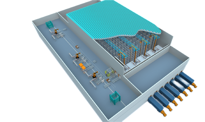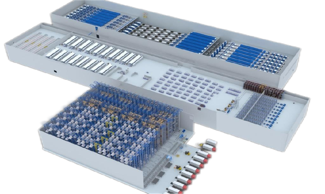 嚴格按照歐盟標準及國標雙重標準執行,并進行TUV認證;非常規的消防配置及要求,單個庫區消防面積1.2萬平方米;實現半托、歐托、宜家托三種托盤及多種貨物單元規格貨物的搭配存儲及共線輸送;配置36米超高速堆垛機14臺,采用多深位模式,同一貨位兼容1個宜家托、2個歐托及4個半托的混合存儲;配置超高速雙工位RGV2臺,可兼容多種托盤規格混合搬運,搬運能力280p/h。