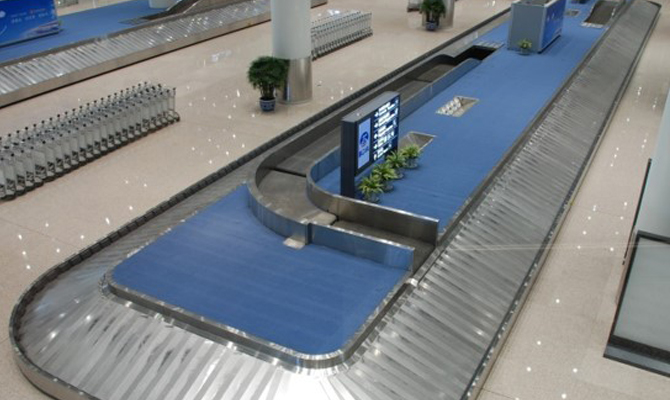 帶走輸送機是主傳送線的一部分,用于收集、帶走來自各條值機傳送線經過安全檢查的行李。