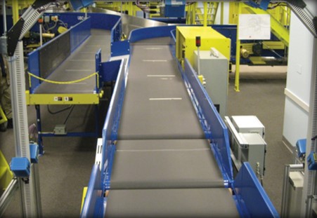 垂直分流器是用來將行李或包裹在兩個不在同一水平面的傳輸機之間無振動、低噪聲平穩的運輸,是常用的行李分揀設備。